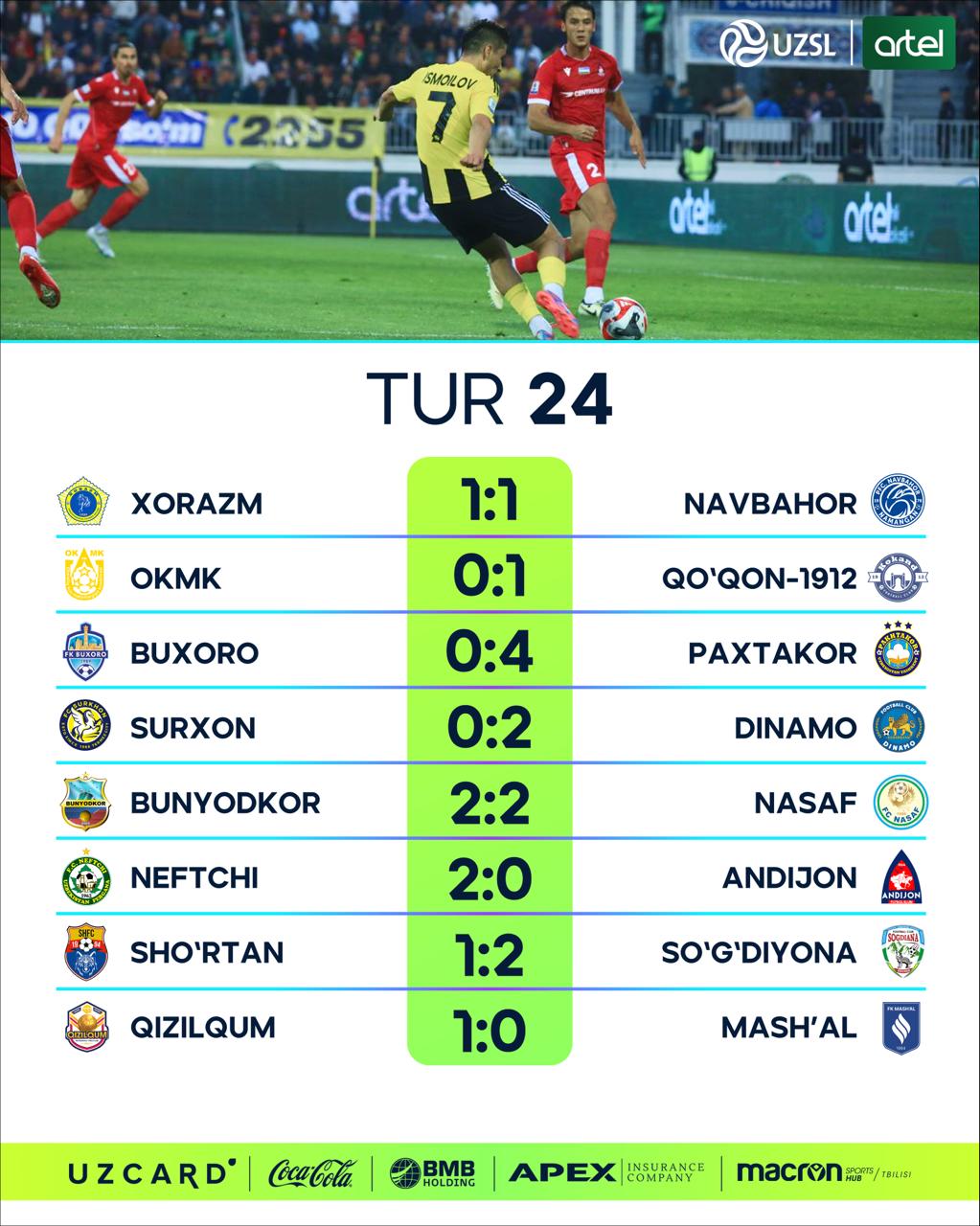 Superliga. 24-turdan so‘ng turnir jadvalidagi yakuniy holat (foto)