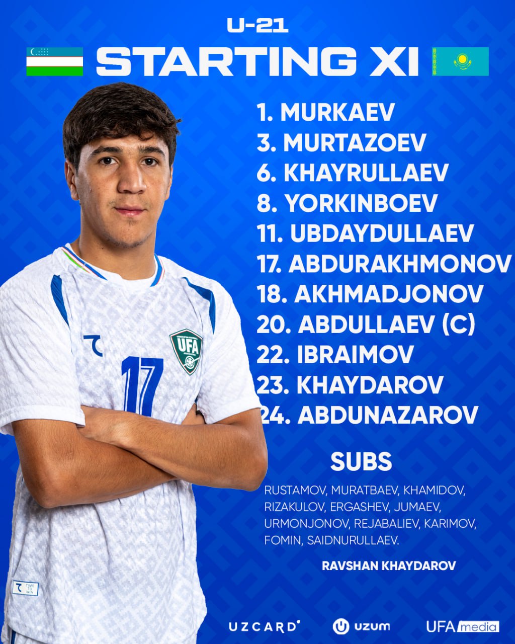O‘rtoqlik uchrashuvi. O‘zbekiston U-20 - Qozog‘iston U-20. Vakillarimiz boshlang‘ich tarkibi e’lon qilindi