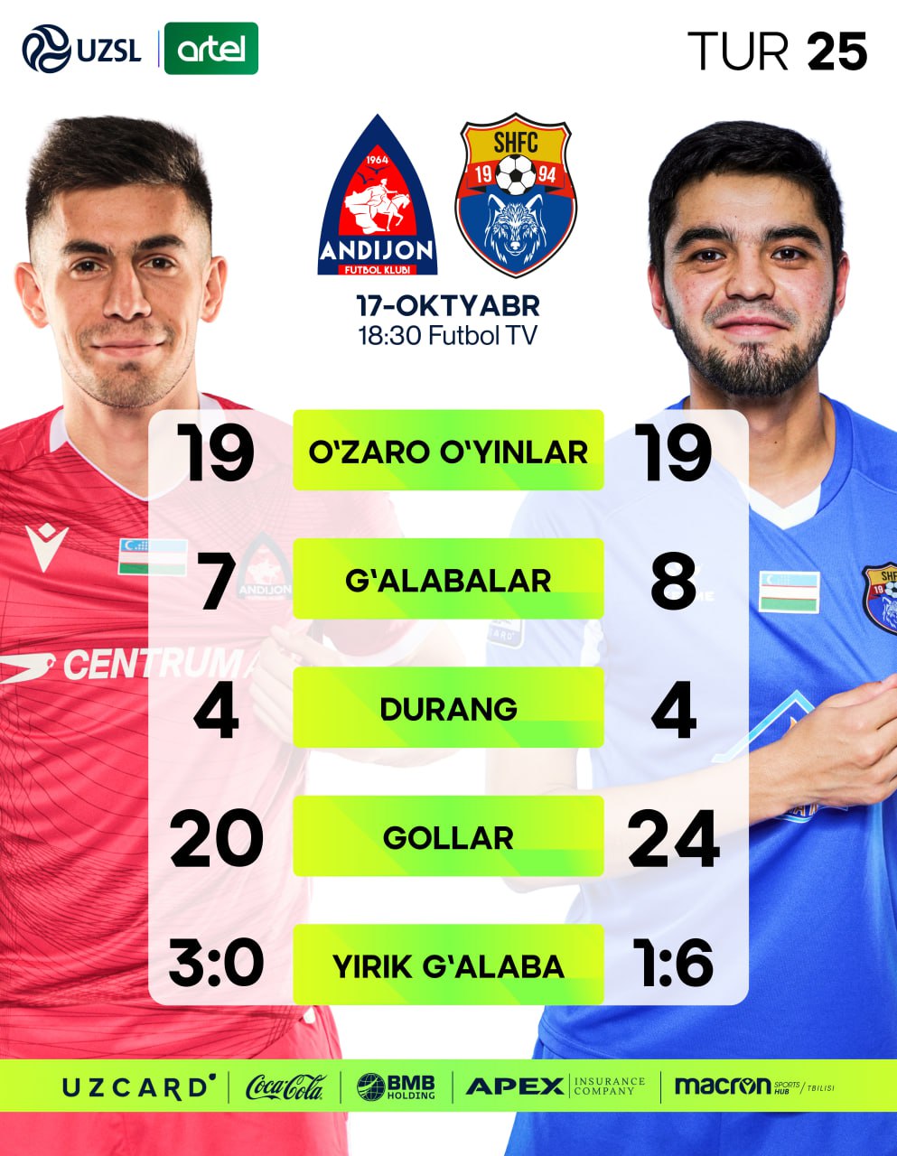 Superliga 24-turida "Andijon" o‘z maydonida "Sho‘rtan"ni qabul qiladi.