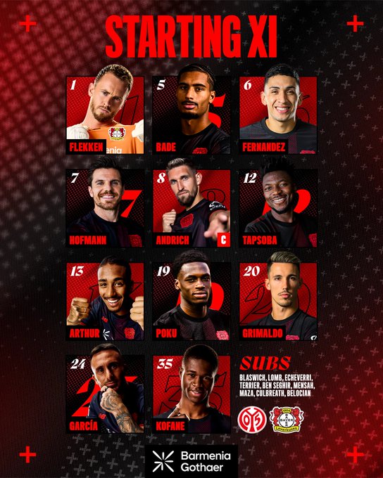 Bundesliga. "Mayns" - "Bayer". Boshlang‘ich tarkiblar e’lon qilindi