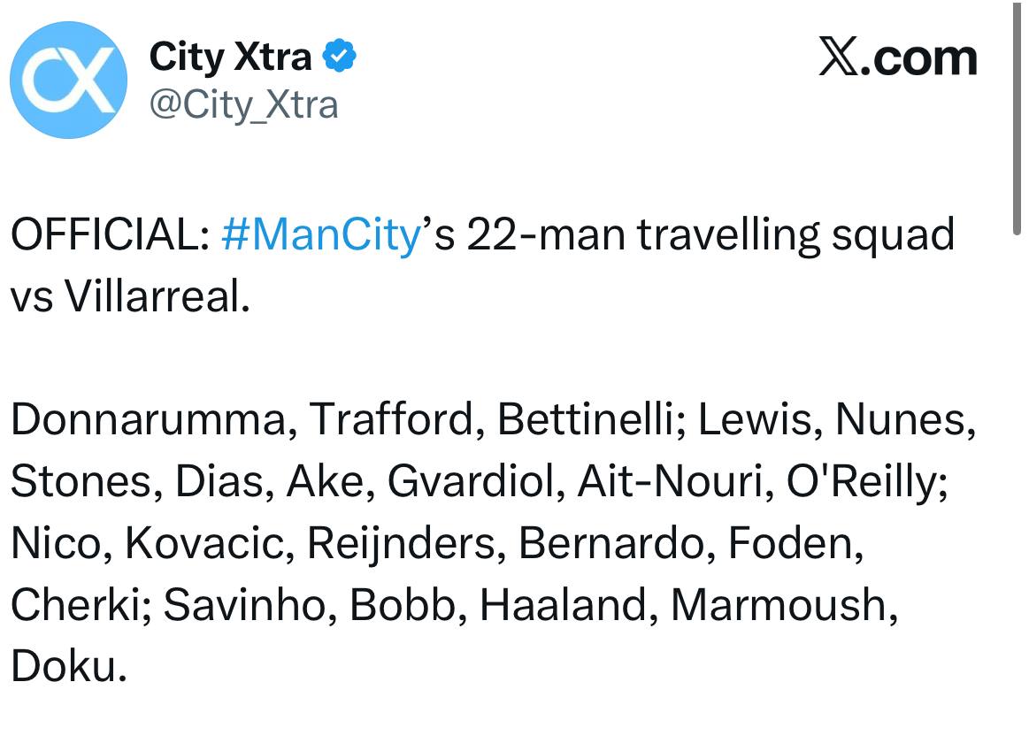 "Manchester Siti" Chempionlar ligasi umumiy bosqichining 3-turida "Vilyarreal" mehmoni bo‘ladi.