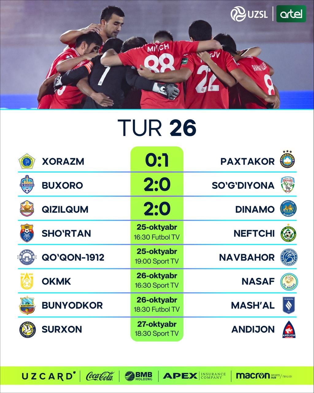 Superligada 26-tur o‘yinlari davom etmoqda.