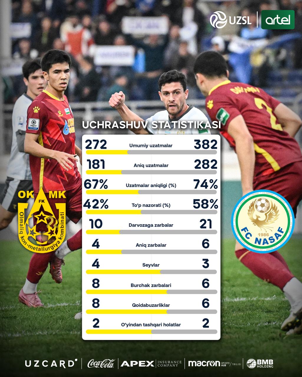Superliga. OKMK – «Nasaf» – 1:1 (O‘yin statistikasi va videosharhi)