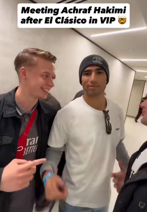 Fransiyaning «Pari Sen-Jermen» klubi himoyachisi Ashraf Hakimiy yakshanba kuni Madriddagi «Santyago Bernabeu» stadionida bo‘lib o‘tgan «Real» — «Barselona» uchrashuvini tomosha qildi.