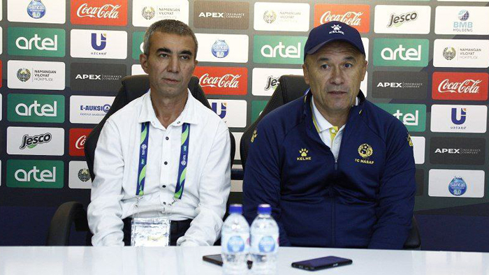 — «Navbahor» bugun 5-4-1 sxemasida o‘ynab, yaxshi himoyalandi. Raqibning rejasi yaxshi himoyalanish bo‘lgani ko‘rinib turdi. Pozision hujumlarda vaziyat yarata oldik. Birinchi bo‘limda gol urib olganimizda yoki ikkinchi 45 daqiqalikda Cheranning tepgan to‘pi darvoza to‘siniga tegmasdan, gol bo‘lganida ishimiz ancha yengillashardi. To‘g‘ri, Namanganga uch ochkoni ko‘zlab kelgandik, lekin yaxshi o‘yin va bir ochko uchun ham shogirdlarimga rahmat aytaman. Durang qoniqarli natija emas, ammo kurash davom etapti. Bu oxiri emas.