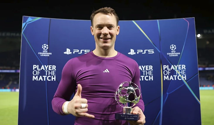 Germaniya jamoasining 39 yoshli posboni 8 ta seyv amalga oshirdi va 6,6 km masofa bosib o‘tdi. Bu uning Chempionlar Ligasidagi 132-o‘yini edi.