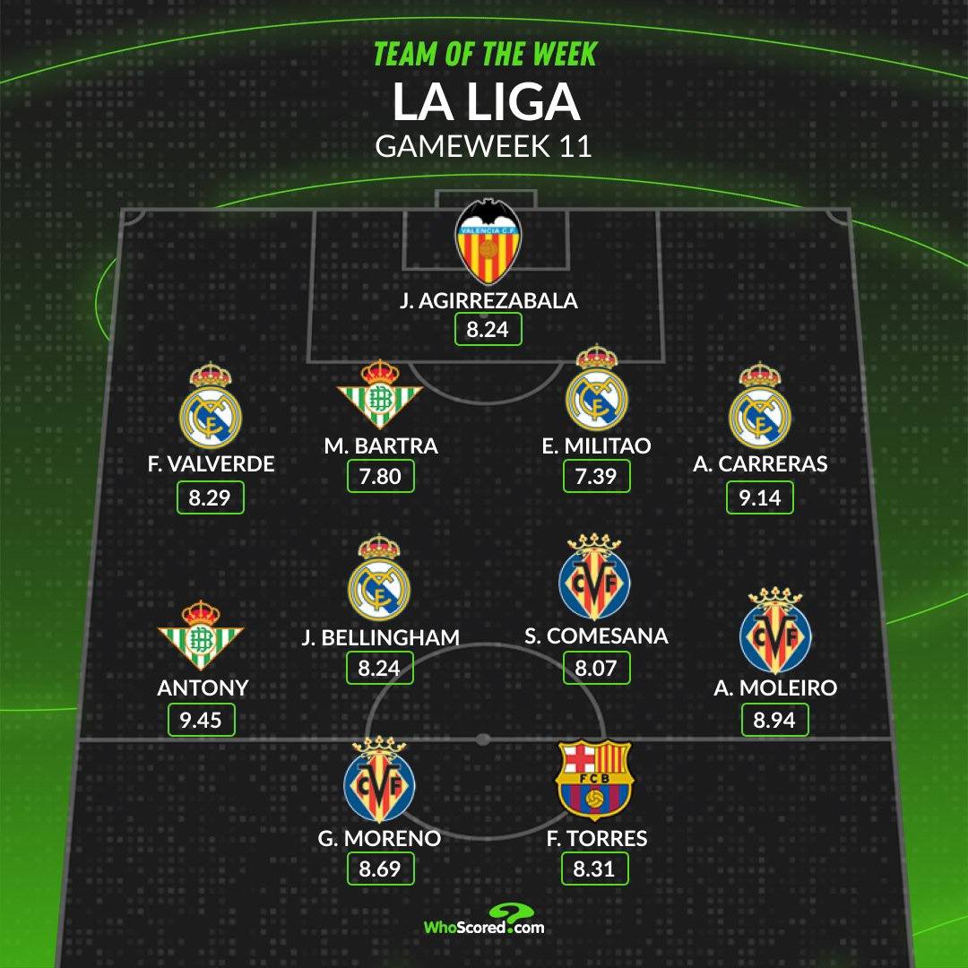 WhoScored portali La Liga 11-tur o‘yinlari ramziy jamoasini taqdim etdi.