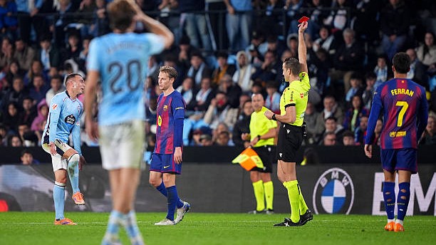 "Barselona" yarim himoyachisi Frenki de Yong La Liga 12-turidan o‘rin olgan "Selta"ga (4:2) qarshi o‘yinning 95-daqiqasida qizil kartochka oldi.