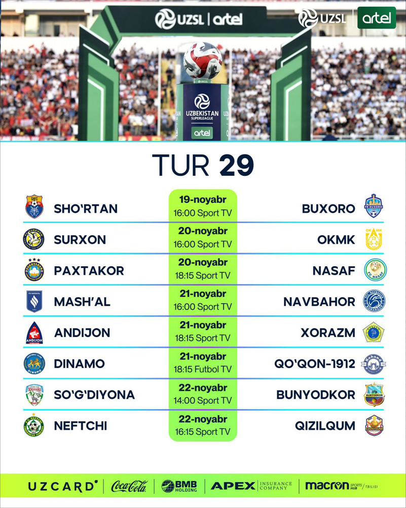 Sport va Futbol telekanallarida 10-noyabr kuni 4 ta jonli futbol translyasiyasi bor [1983]
