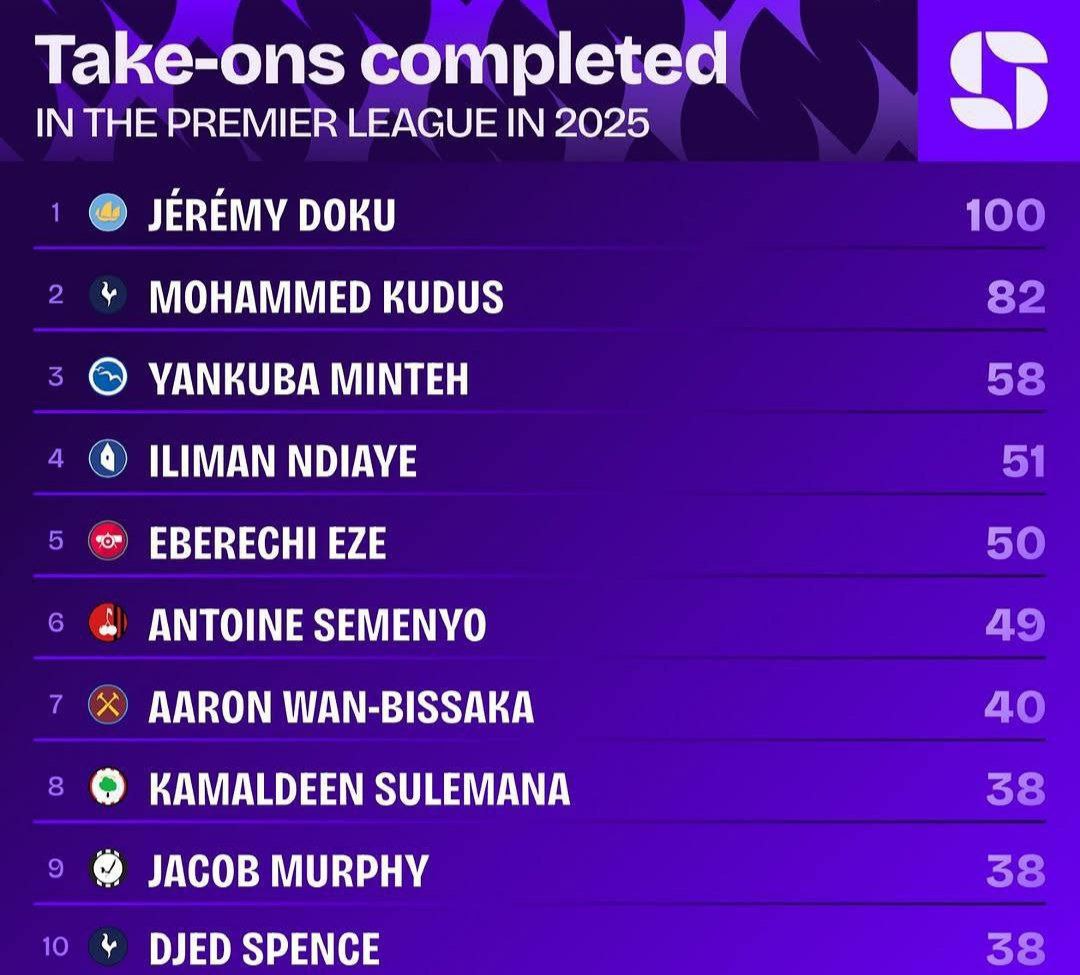 Bu borada "Tottenxem"dan Muhammad Kudus (82 ta dribling) va "Brayton"dan Yakuba Minte (58 ta dribling) kuchli uchlikni yakunlagan.