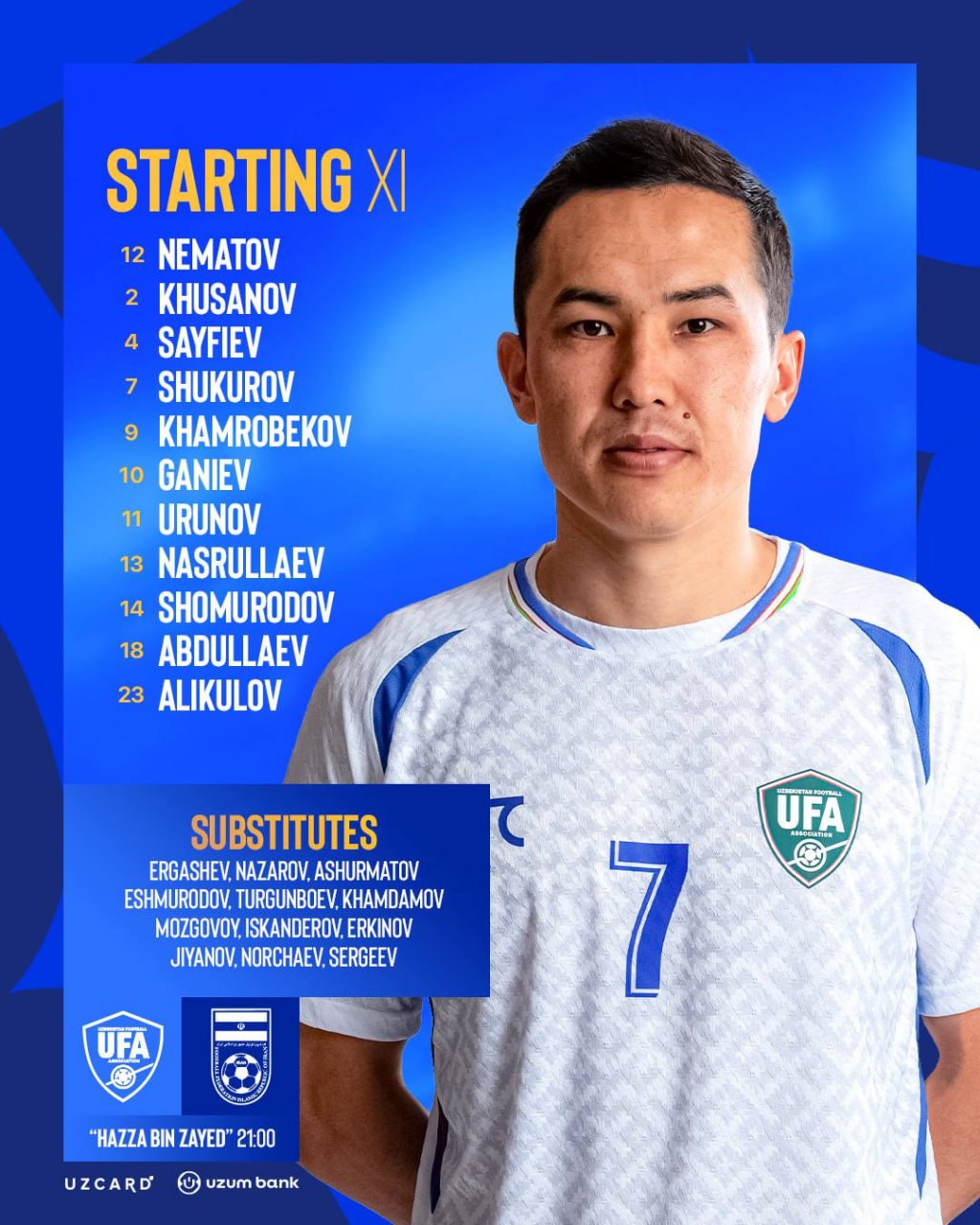 Al Ain Cup. Final. O‘zbekistonning Eronga qarshi asosiy tarkibi ma’lum