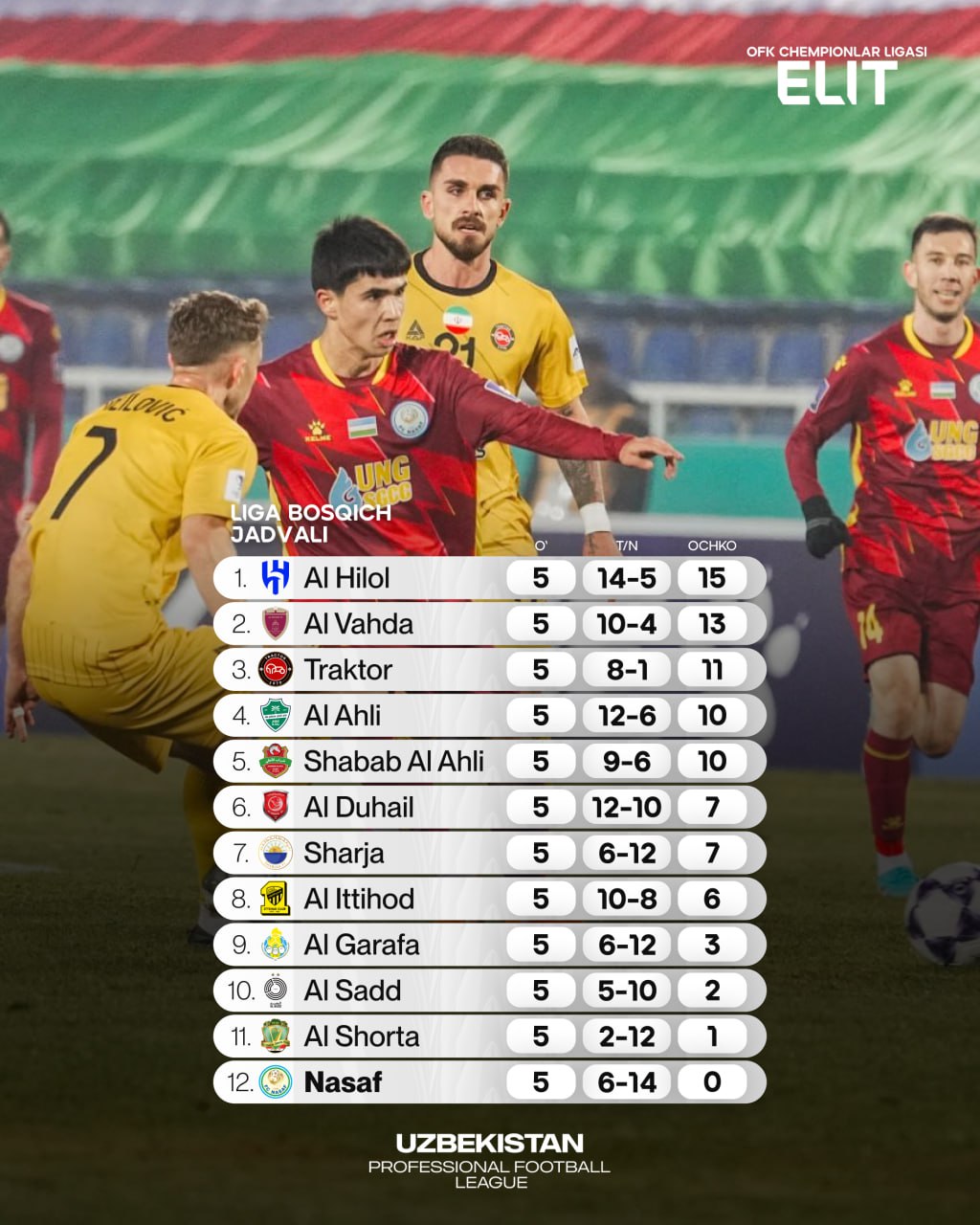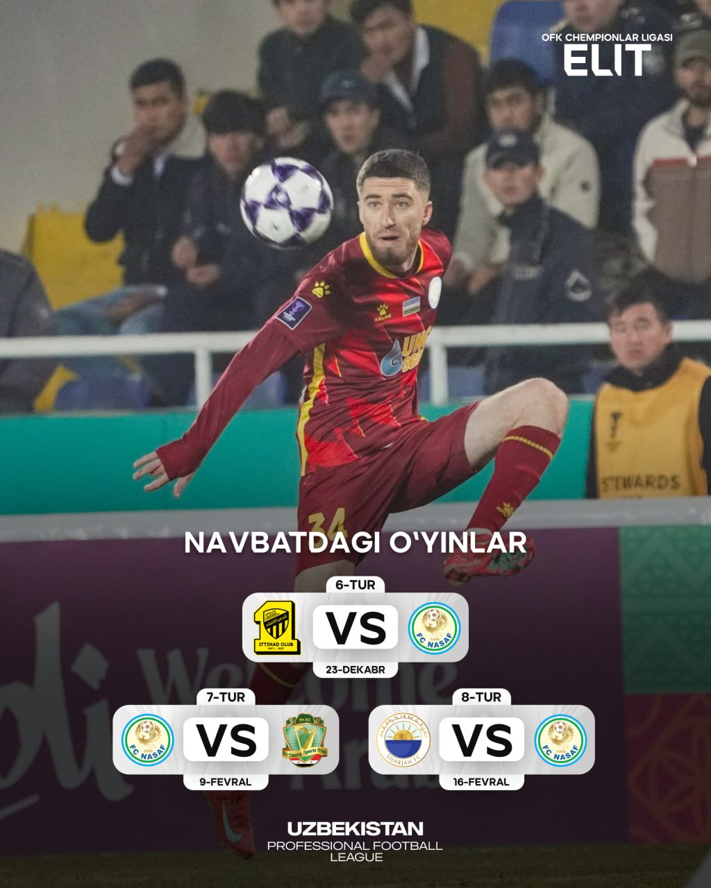 Elit OCHLda 5-tur ortda qoldi: "Nasaf"ning navbatdagi 3 ta o‘yini va turnir jadvalidagi hozirgi holat (foto)