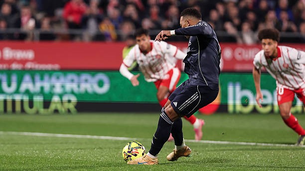 14-turda "Jirona"ga qarshi o‘yinda Madrid klubi ushbu chempionatdagi 7-penaltini aniq amalga oshirdi - Kilian Mbappe zarbani golga aylantirdi (1:1).