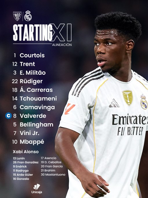 Ispaniya chempionati 19-turidan o‘rin olgan "Atletik" - "Real" bellashuvi asosiy tarkiblari bilan tanishing.