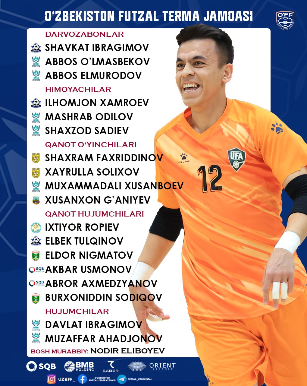 Futzal. O‘zbekiston terma jamoasining Rossiyaga qarshi o‘yinlar uchun qaydnomasi ma’lum bo‘ldi