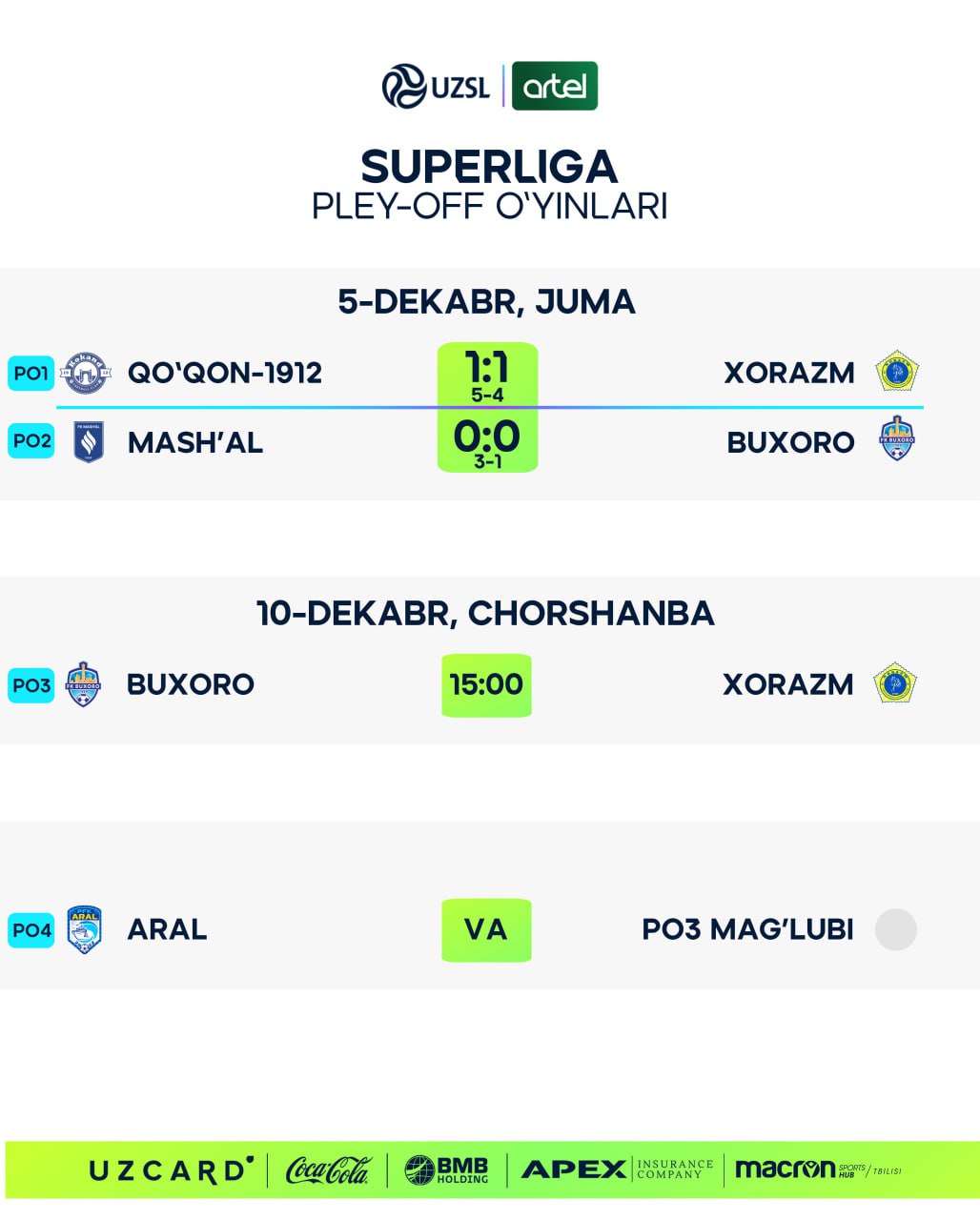 Bugun Superligada qolish uchun o‘tish o‘yini bo‘lib o‘tadi. Unda "Buxoro" va "Xorazm" bahs olib boradi.