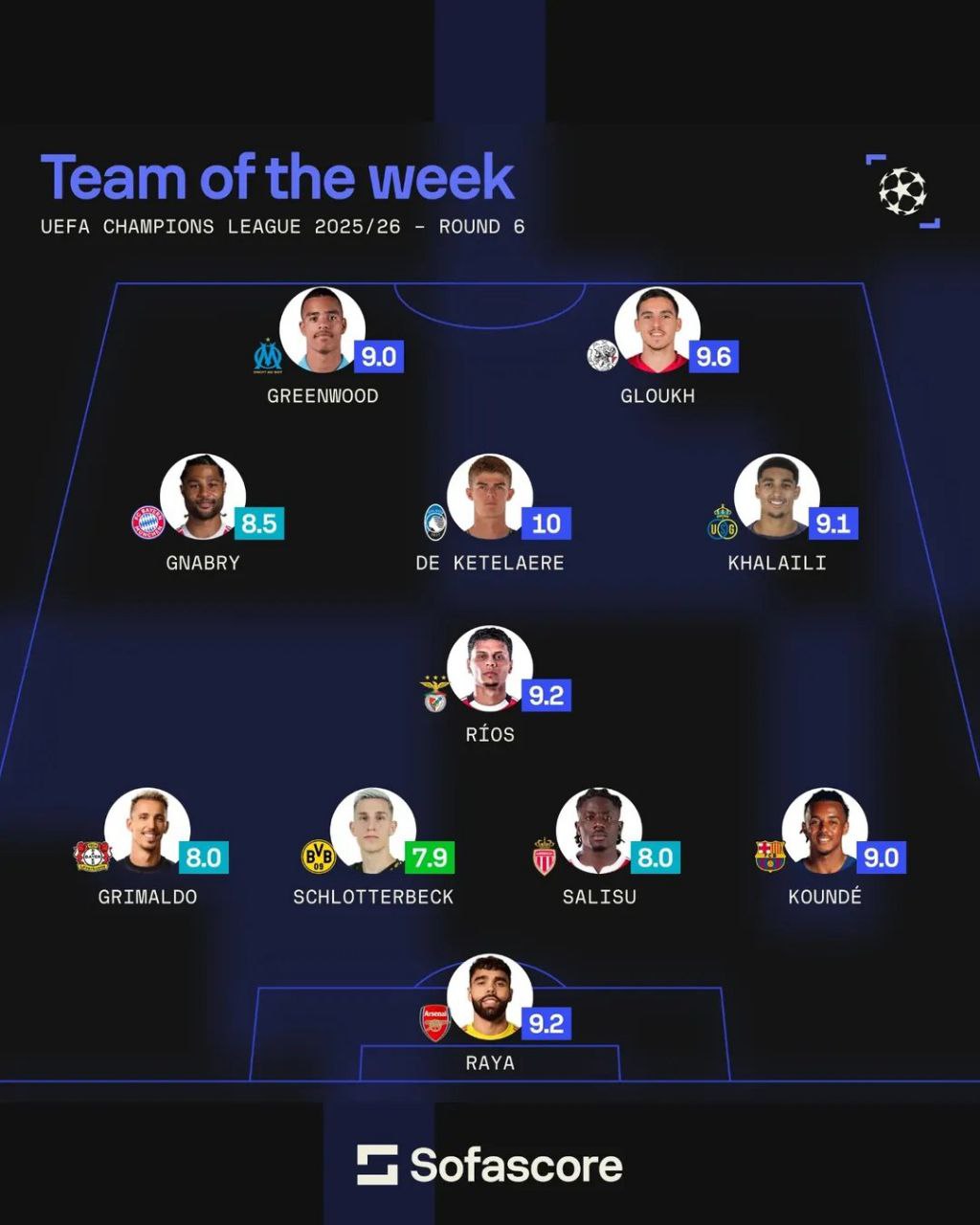Jahonning ikki mashhur statistik portali WhoScored va SofaScore o‘z versiyalari bo‘yicha Chempionlar Ligasi 6-tur ramziy jamoasini tuzib chiqdi.
