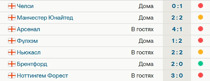 APLning so‘nggi 7 o‘yinida "Tottenxem" faqat bitta o‘yinda - "Brentford" ustidan g‘alaba qozondi (2:0). Shuningdek, ushbu oraliqda "shporlar" hisobida ikkita durang va beshta mag‘lubiyat bor.