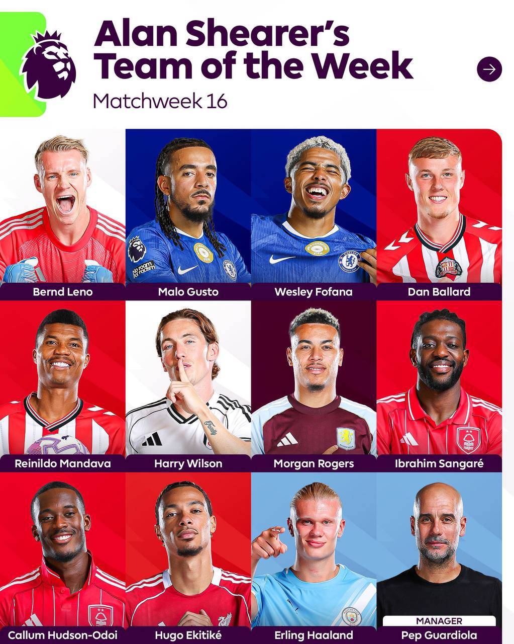 Angliya Premyer-ligasi tarixidagi eng yaxshi to‘purar Alan Shirer liga 16-tur ramziy jamoasini tuzib chiqdi.