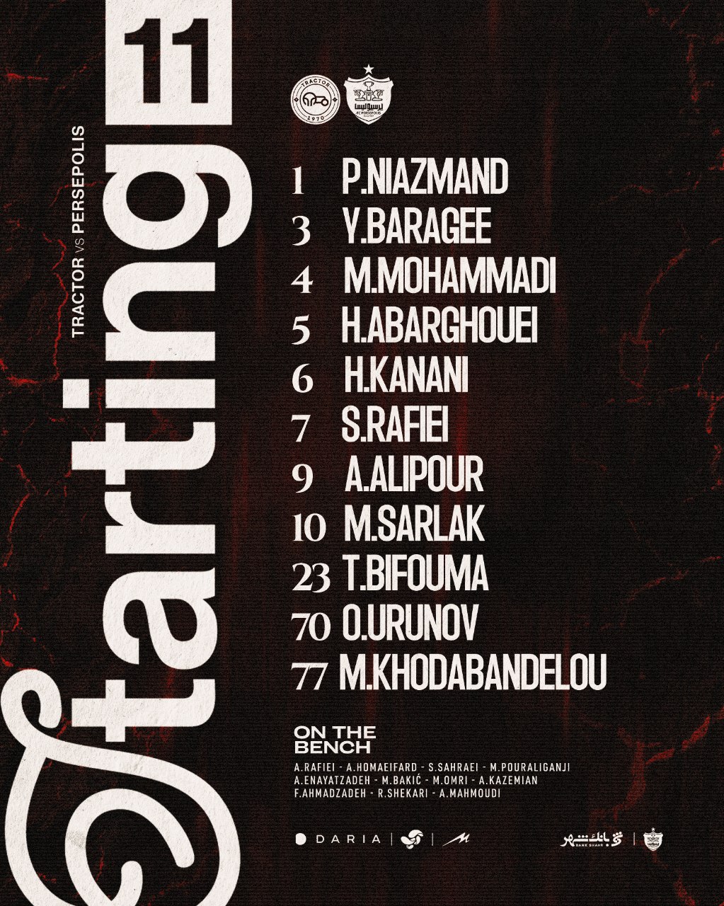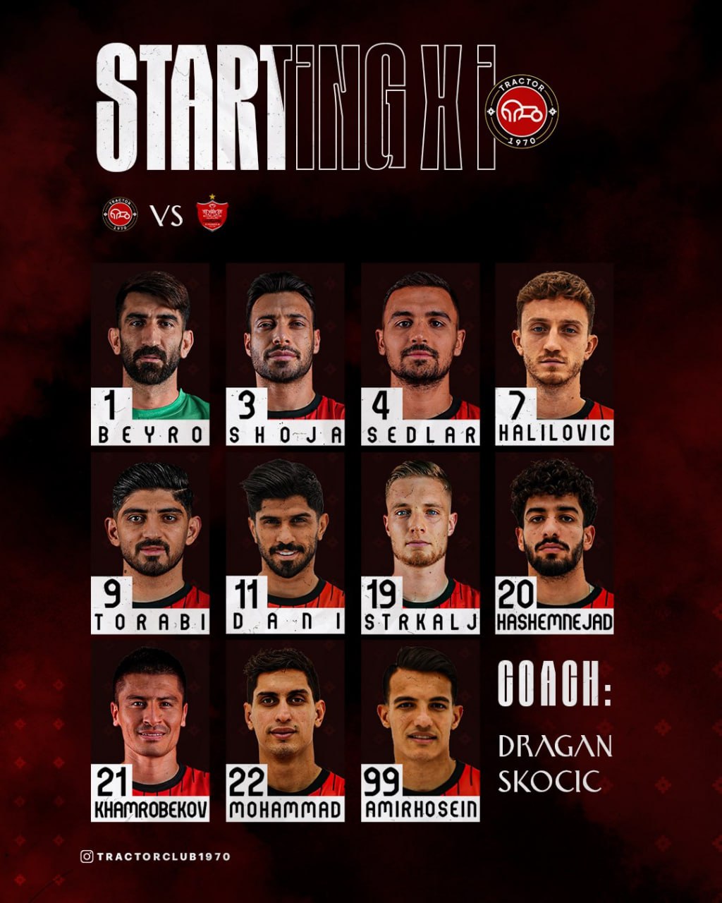 Eron kubogi 1/16 finalidan o‘rin olgan "Traktor" - "Persepolis" uchrashuvi uchun asosiy tarkiblar e’lon qilindi.
