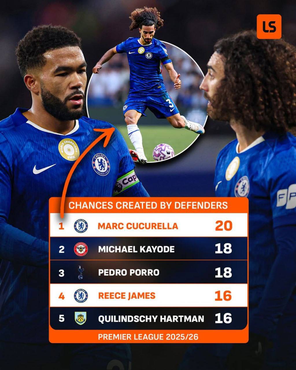 "Chelsi" chap qanot himoyachisi Mark Kukurelya Angliya Premyer-ligasining joriy mavsumida eng ko‘p xavfli vaziyat yaratgan himoyachi bo‘lib turibdi. Ispaniyalik futbolchi ortda qolgan 17 turda 20 ta xavfli vaziyat yaratgan.