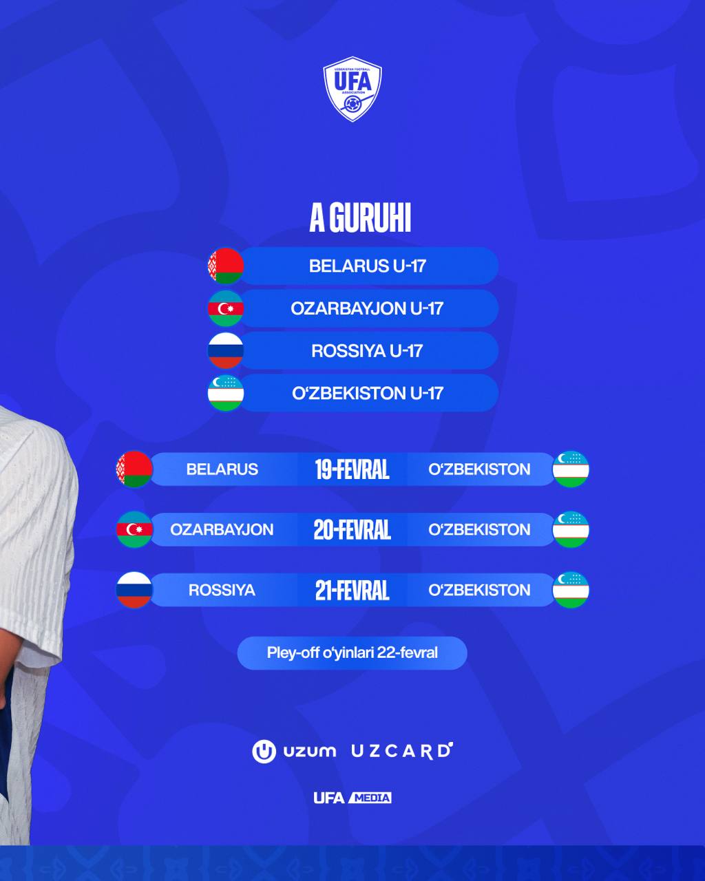 Shuningdek, turnirda Tojikiston va Qozog‘iston U-17 terma jamoalari ham qatnashadi.