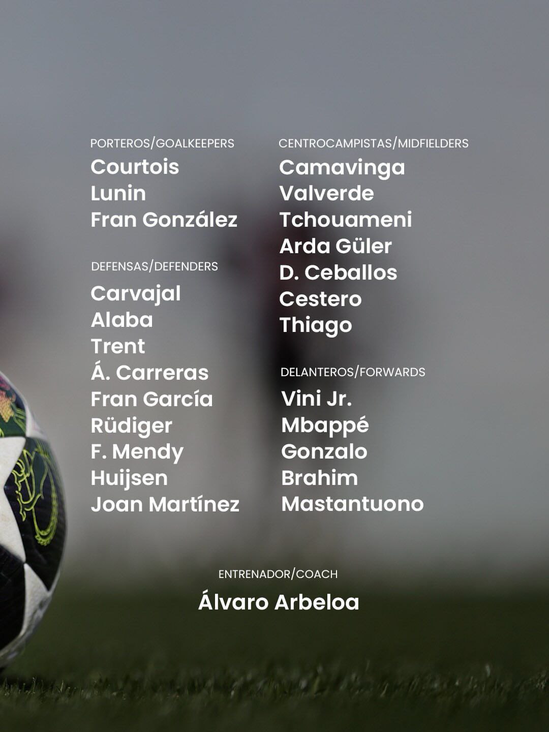 Chempionlar ligasi 1/16 bahsi doirasidagi birinchi uchrashuvni o‘tkazish uchun "Real" Portugaliyaga yo‘l oldi. U yerda jamoa "Benfika"ga qarshi o‘ynaydi. Klub matbuot xizmati ertaga maydonga tushishi mumkin bo‘lgan futbolchilar ro‘yxatini e’lon qildi.