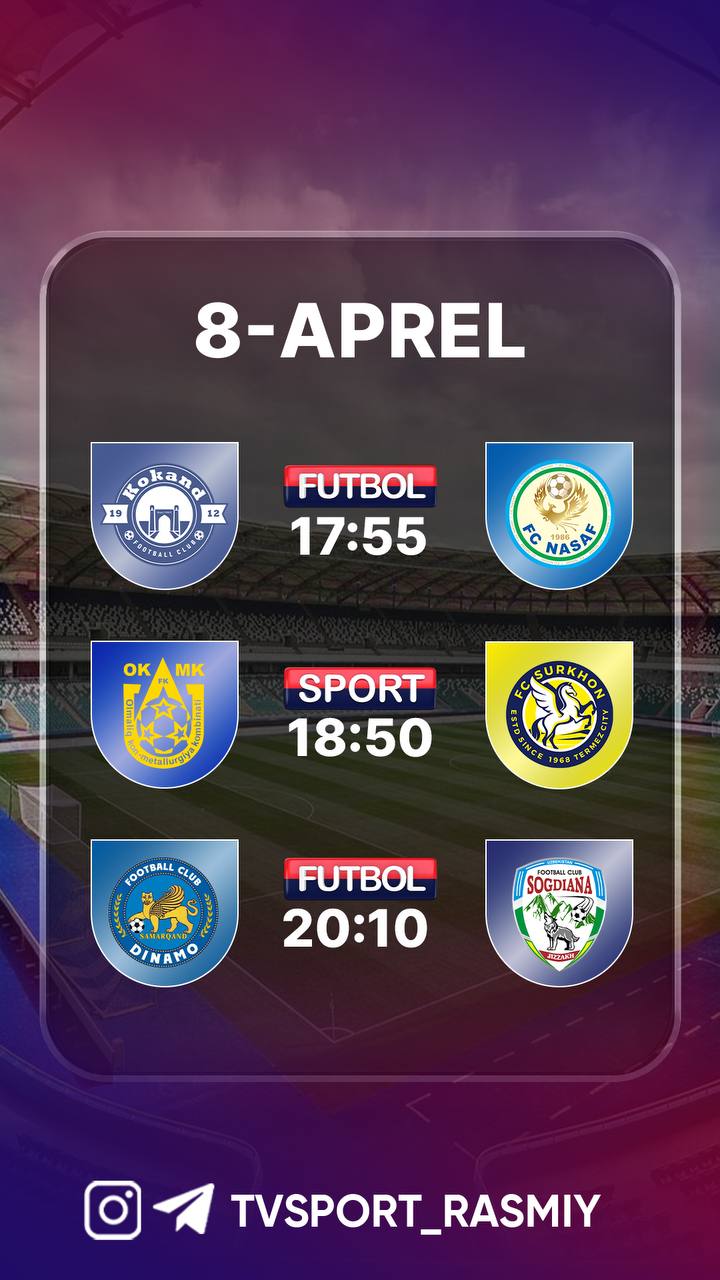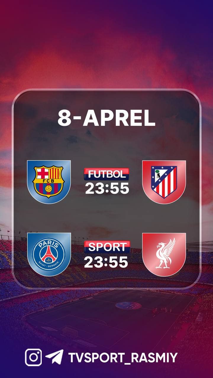 Sport va Futbol telekanallari bugun — 2026 yil 8-aprel, chorshanba kuni quyidagi futbol translyasiyalarini efirga uzatishni rejalashtirgan.
