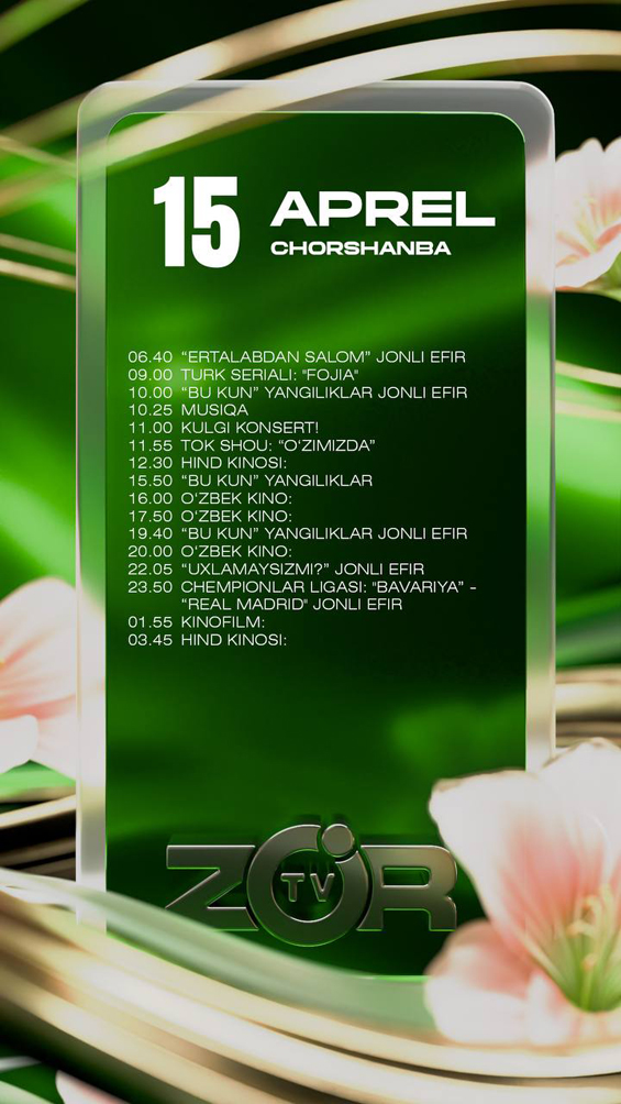 Bugun 15 aprel, 2026 yil, chorshanba.