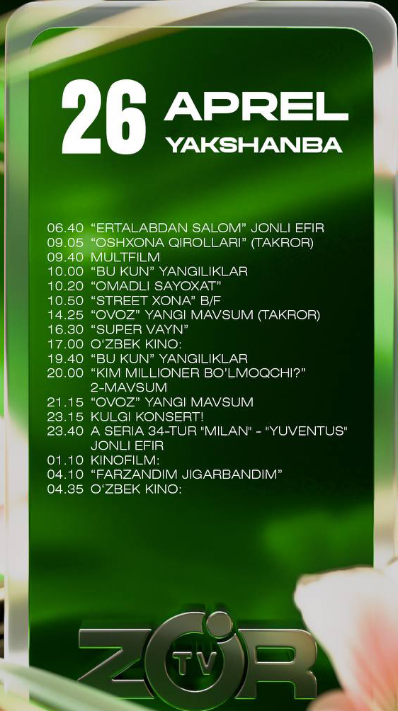 Bugun 26 aprel, 2026 yil, yakshanba.