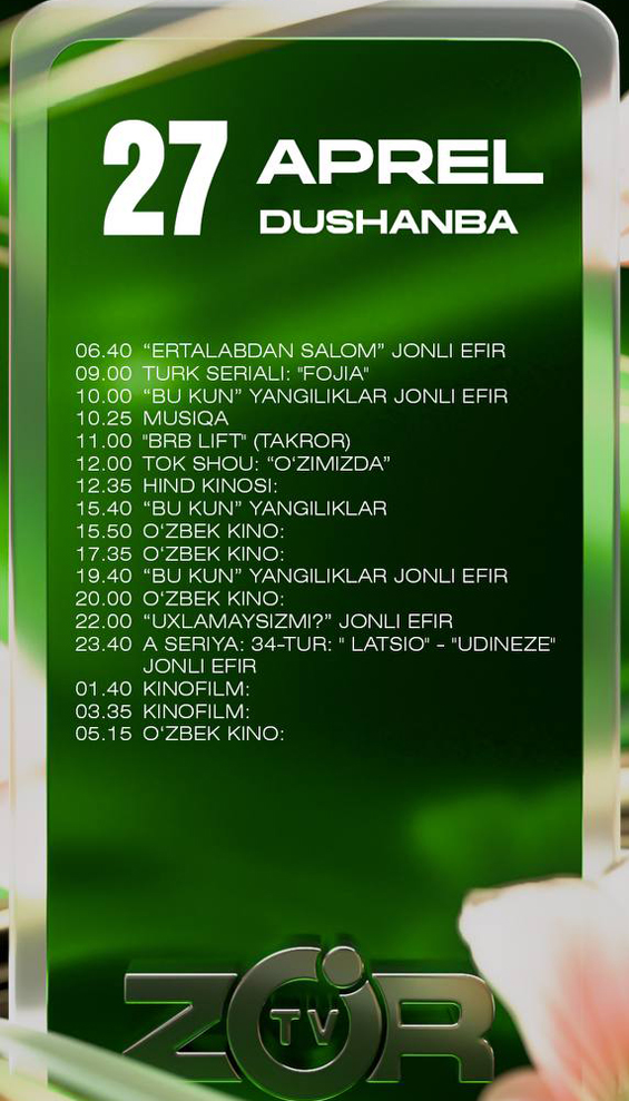Italiya chempionatining 34-turidan o‘rin olgan «Lasio» va «Udineze» klublari o‘rtasidagi uchrashuvni «ZO’R TV» telekanali jonli efirda namoyish etadi.